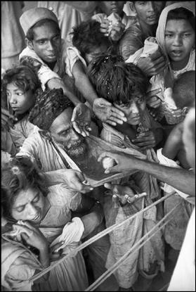 On the 39th birthday of the maharajah of Baroda, sugar-balls are distributed to the poor.India. Baroda. 1948.