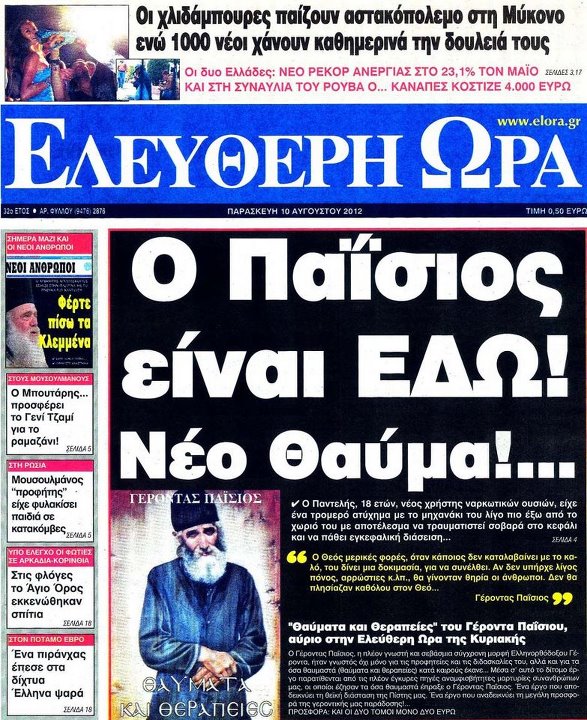 Μία ημέρα μετά την επερώτηση της φασιστικής οργάνωσης «Χρυσή Αυγή» προς τους Υπουργούς Παιδείας και Δημόσιας Τάξης, με θέμα την προσβολή της μνήμης του γέροντα Παΐσιου από χρήστη του Facebook, η Δίωξη Ηλεκτρονικού Εγκλήματος —όπως αναφέρει στο Δελτίο Τύπου που απέστειλε και στο οποίο αναφέρεται ότι «συνέλαβε 27χρονο ημεδαπό για κακόβουλη βλασφημία και καθύβριση θρησκευμάτων», διότι «διαχειριζόταν σελίδα στο Facebook με βλάσφημο και υβριστικό περιεχόμενο για το Γέροντα Παΐσιο και τον Ορθόδοξο Χριστιανισμό»— σχημάτισε δικογραφία εναντίον του και τον οδήγησε στην Εισαγγελία Αθηνών. Έχουμε έτσι άλλο ένα κρούσμα δίωξης βάσει των νόμων περί βλασφημίας (υπενθυμίζουμε ότι στις 9 Ιουλίου 2012, βάσει των ίδιων νόμων συνελήφθησαν τρεις ηθοποιοί της θεατρικής παράστασης «Corpus Christi» και οδηγήθηκαν στο Α.Τ. Ομονοίας — ζήτημα, για το οποίο η βουλευτής της Δημοκρατικής Αριστεράς Μαρία Γιαννακάκη κατέθεσε στις 6/9 ερώτηση στη Βουλή, προς τον υπουργό Δικαιοσύνης).