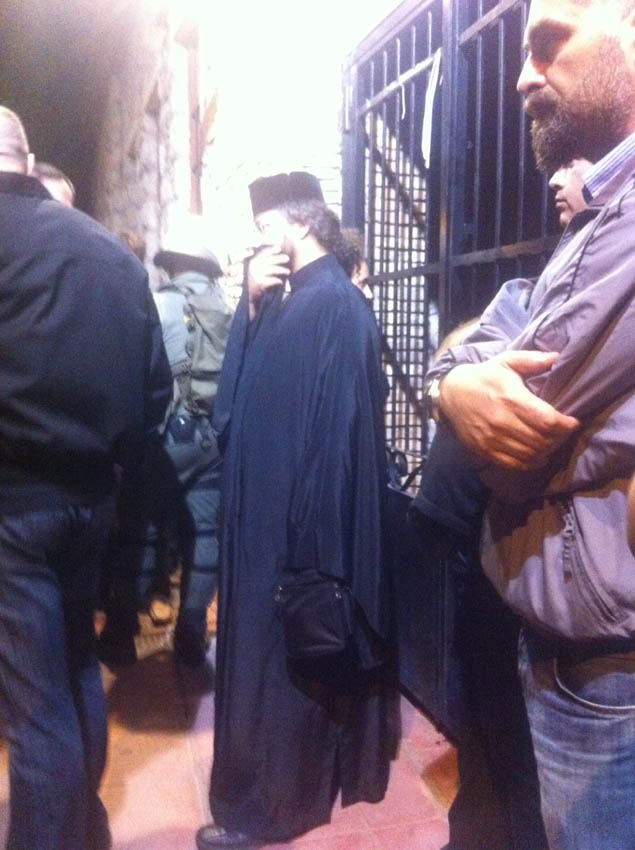 2. Σκηνη 12 πολύ ξύλο πέφτει αυτή την ώρα έξω από το θέατρο «Χυτήριο» με ματατζήδες να χτυπούν και να ρίχνουν χημικά σε ηλικωμένους, γέρους, γριές, πιστούς και Έλληνες χριστιανούς που διαμαρτύρονται για την προβολή του αντίχριστου έργου των βλάσφημων της βρωμερής παράστασης.