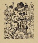 Η εμμονική, τοτεμικού χαρακτήρα, απεικόνιση του θανάτου κατά τη διάρκεια της Ημέρας των Νεκρών, έχει συνδεθεί με το έργο του σκιτσογράφου και γελοιογράφου José Guadalupe Posada (1851-1913). Γεννημένος στο  Aguascalientes, ο Posada διδάχτηκε στην εφηβεία λιθογραφία και χαρακτική, στο εργαστήριο του  Trinidad Pedroso. Η πρώτη του δουλειά ως πολιτικού γελοιογράφου ήταν στην τοπική εφημερίδα El Jicote (Η Μέλισσα), η οποία όμως έκλεισε μετά το 11ο φύλλο, επειδή μια γελοιογραφία του Posada ενόχλησε κάποιον πολιτικό παράγοντα της περιοχής.  Ο Posada μετακόμισε στο León και, αργότερα, στην πόλη του Μεξικό, όπου εργάστηκε, διάσημος πλέον, στην εφημερίδα La Patria Ilustrada (Πατρίς εικονογραφημένη), εκδότης της οποίας ήταν ο Ireneo Paz, παππούς του συγγραφέα Octavio Paz.