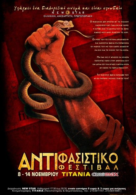 Η New Star διοργανώνει κινηματογραφικό αφιέρωμα κατά του φασισμού στον κινηματογράφο Τιτάνια, Πανεπιστημίου και Θεμιστοκλέους, 8-14 Νοεμβρίου 2012.