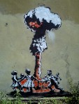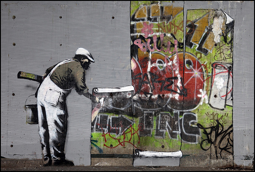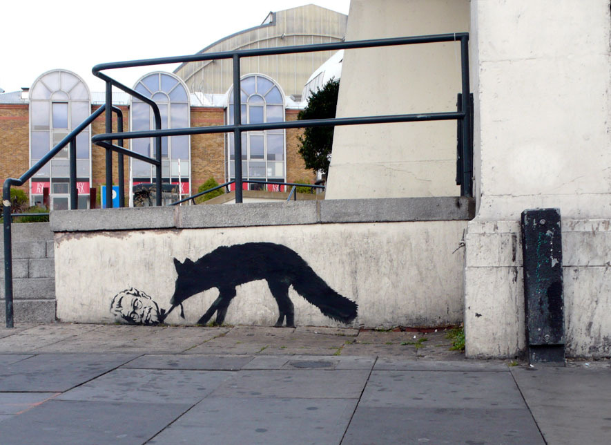 Ο Banksy ήταν εδώ; Ίσως ναι. Ίσως όχι. Μάλλον ήταν — να ένα καινούριο grafiti στον τοίχο / στον φράχτη / στον κάδο.