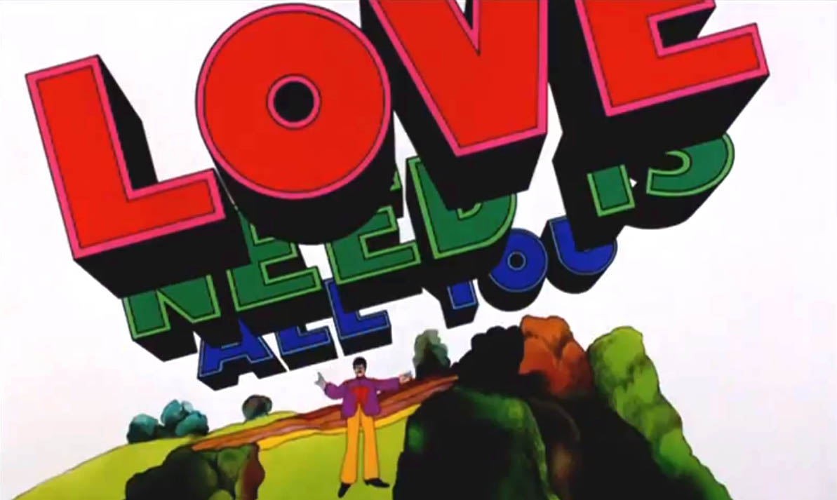 Θέλω να πω μερικά πράγματα για το κείμενο — για τις λέξεις. Ουδέποτε υπήρξε σενάριο πλήρες και εξαντλητικά λεπτομερές και φαίνεται ότι αρκετά πράγματα γράφονταν επί τόπου, την ώρα της δημιουργίας της ταινίας. Το γεγονός αυτό είναι ένας από τους λόγους που το Yellow Submarine διακρίνεται για αυτή τη συνειρμική ροή στο ρυθμό, για αυτήν την ονειρική αίσθηση — ταυτόχρονα, είναι ένα καλό μάθημα για πιο εγκεφαλικούς συγγραφείς, όπως εγώ. Οι λέξεις δεν προφέρονται απλώς, αλλά συχνά εμφανίζονται και στην οθόνη. Ας πούμε σε εκείνη την απίστευτη σκηνή του When I’m Sixty-Four, όπου φράσεις και αριθμοί ζωντανεύουν. Ή όλες τις φορές που οι λέξεις ΑΓΑΠΗ, ΞΕΡΩ, ΟΚ και άλλες εμφανίζονται ως μνημεία στην Pepperland. Οι καλλιτέχνες που δημιούργησαν το Yellow Submarine λάτρευαν τις λέξεις και τους αριθμούς ως τέχνη. Δεν ήταν οι πρώτοι, ωστόσο η δουλειά τους επηρέασε γενιές και γενιές graphic designers.