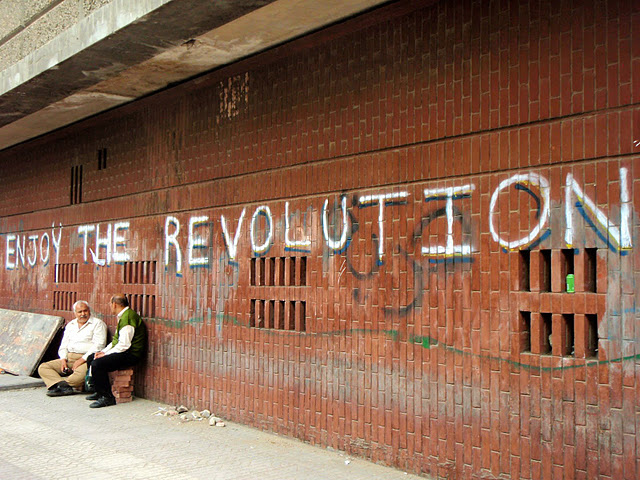 Tahrir-Square-Cairo-Egypt-Two-old-men-debating-politics-underneath-revolutionary-graffiti-photo-by-Sloane-Speakman
