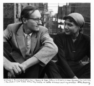 ca. 1953, Lower East Side, Manhattan, New York, New York, USA — William S. Burroughs & Alene Lee talking on the roof of Allen Ginsberg’s apartment building in New York City in 1953; text written by Allen Ginsberg. — Image by © Allen Ginsberg/CORBIS