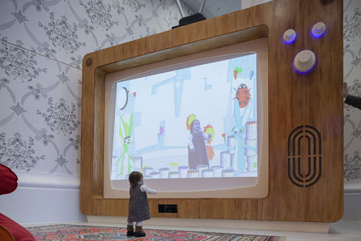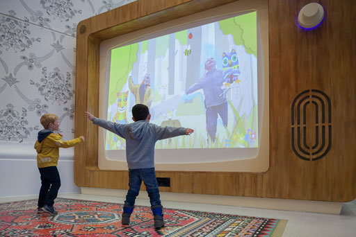 Το παιχνίδι του Κρις, ονόματι Woodland Wiggle, παίζεται σε μια τεράστια οθόνη τηλεόρασης, η οποία είναι τοποθετημένη σε ένα δωμάτιο γεμάτο με επίσης τεράστια χνουδωτά ζωάκια και καρέκλες. Το Woodland Wiggle αξιοποιεί τη συσκευή Kinect της Microsoft, με αισθητήρες κίνησης και κάμερα [το Kinect χρησιμοποιείται στο Xbox 360], συνδεδεμένο με ένα Mac και με την οθόνη, και εντάσσει τα παιδιά σε μια σειρά δασικών τοπίων, δομημένων γύρω από τα λούτρινα ζωάκια.