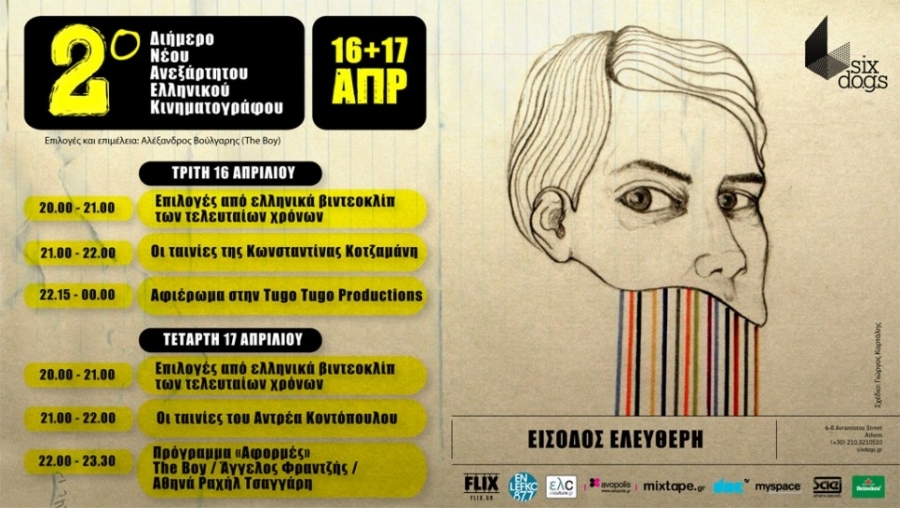 Μετά την επιτυχία του περσινού του εγχειρήματος ο Αλέξανδρος «The Boy» Βούλγαρης επιστρέφει, χαρτογραφώντας για δεύτερη φορά τις underground πτυχές του νέου ελληνικού σινεμά. Φέτος, το πρόγραμμα του 2ου διήμερου Νέου Ανεξάρτητου Ελληνικού Κινηματογράφου που γίνεται την Τρίτη 16 και την Τετάρτη 17/4 στο Six D.o.g.s. (6-8 Αβραμιώτου, 2103210510) με είσοδο ελεύθερη περιλαμβάνει μια σειρά σκηνοθετών που με τον έναν τρόπο ή τον άλλο έχουν αποφασίσει να εξερευνήσουν τον συναρπαστικό κόσμο του φανταστικού κινηματογράφου. Μια από αυτές είναι και η ταλαντούχα στυλίστρια Κωνσταντίνα Κοτζαμάνη, η οποία παρουσίασε στο περασμένο Φεστιβάλ Δράμας το νέο της φιλμ «Arundel» (Βραβείο Σκηνογραφίας).
