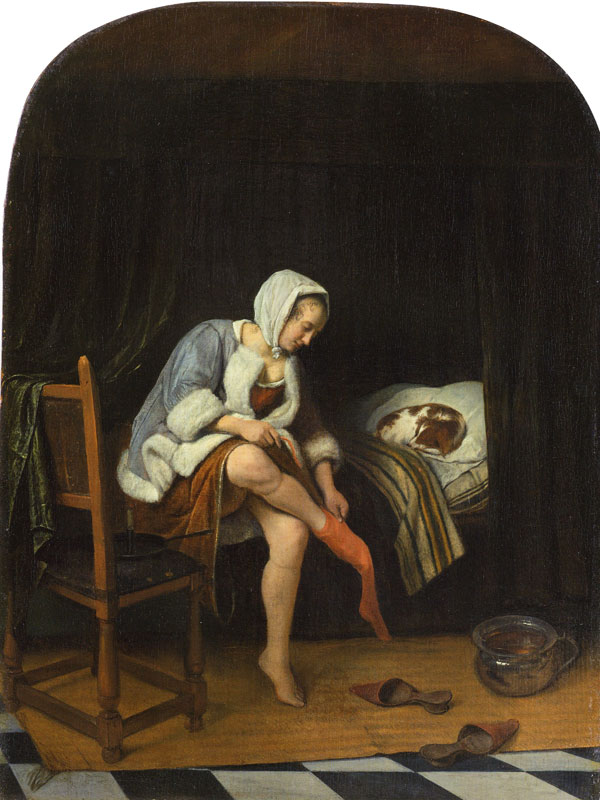 Επιτέλους. Εκεί είναι, όλοι οι παλιοί μου φίλοι, χαμένοι τα τελευταία 10 χρόνια, ακουμπούν στον τοίχο και περιμένουν να επιστρέψουν εκεί όπου ανήκουν: στους τοίχους του Rijksmuseum στο Άμστερνταμ. Εκεί ήταν τα μετέωρα πόδια του άρρωστου παιδιού με το άδειο βλέμμα, που λικνίζεται στην αγκαλιά της μητέρας του, του Gabriël Metsu· εκεί ήταν το μάτσο τα λευκά σπαράγγια του Adriaen Coorte, σε μια απόκοσμη αντίθεση με τον μαύρο σπάγκο που πιέζει τη λευκή σαν το χαρτί «επιδερμίδα» του όγκου τους. Υπήρχε κι άλλο ένα ζευγάρι πόδια, που ανήκαν στην όμορφη ερωμένη του Jan Steen, με τις μπούκλες να ξεφεύγουν από τον απαλό σκούφο της, καθισμένη στη γωνιά ενός κρεβατιού, με το δεξί της πόδι, που φέρει τα σημάδια της καλτσοδέτας της, να ακουμπάει πάνω στο αριστερό της πόδι, με τους μηρούς της σκανδαλωδώς ορατούς, έτσι που έχουν κατέβει οι άλικες κάλτσες της. «Τι λες;» ρώτησε ο Taco Dibbits, διευθυντής των συλλογών του Rijksmuseum, και ήρωας, μαζί με τον Γενικό Διευθυντή του Μουσείου, Wim Pijbes, αυτής της χαρμόσυνης, θαυμάσιας μεταμόρφωσης, «Πάνω ή κάτω;» «Κάτω», του είπα. «Τότε θα τοποθετηθεί εκεί», είπε, με το σοφό χαμόγελό του.