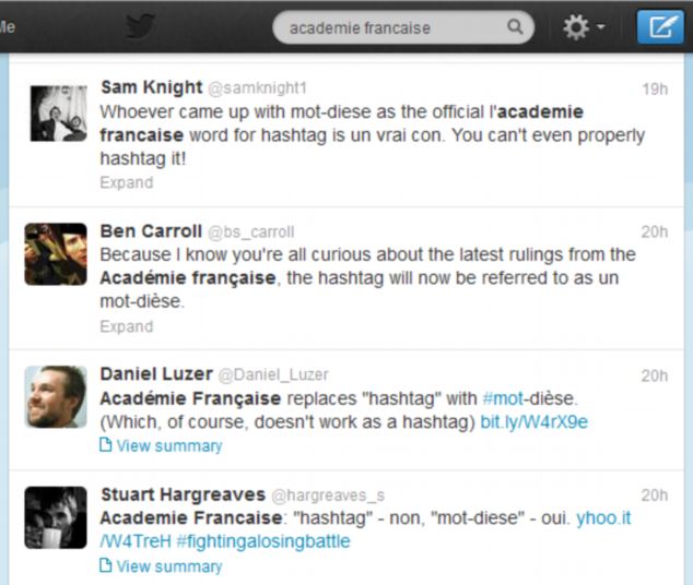 Σε κάθε περίπτωση, οι Γάλλοι νομοθέτες δείχνουν να ξεχνούν το πιο προφανές: Μια γλώσσα έχει δική της δυναμική, είναι κάτι ζωντανό που εξελίσσεται, ειδικά μέσα σε ένα περιβάλλον διαδικτυακής –και όχι μόνο– παγκοσμιοποίησης. Όποιο κι αν είναι το αποτέλεσμα μέσα στο κοινοβούλιο, στα κλαδιά του γαλλικού Twitter ήδη κελαϊδούν αγγλόφωνα πουλιά.