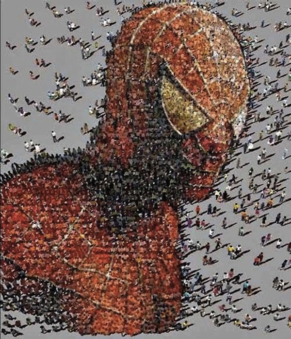 Με την πρώτη ματιά, τα πορτρέτα —του Bruce Lee, του Michael Jackson, των Beatles— δίνουν την εντύπωση ότι αποτελούνται από pixels που, για κάποιο λόγο, διακρίνονται έντονα. Αν όμως πλησιάσεις και κοιτάξεις πιο προσεκτικά, διακρίνεις ότι αποτελούνται από κάτι τοσοδούλικα ανθρωπάκια που στέκονται, κάθονται ή περπατάνε, σε μεγάλες ομάδες.