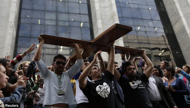 Νέοι φέρνουν τον Σταυρό στο δημαρχείο του Ρίο (φωτό: Reuters).