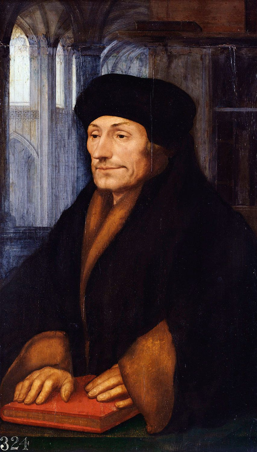 Ο λόγιος, θεολόγος Έρασμος (Desiderius Erasmus Roterodamus, 1469-1536) τολμά την εποχή της Ιεράς Εξέτασης να τα βάλει με τους ισχυρούς, αξιοποιώντας την περσόνα της Τρέλας, της κυρίας Stultitia, στο Μωρίας Εγκώμιον το οποίο εντάσσεται στη μακρά παράδοση του κωμικού εγκωμιασμού, που γίνεται με ηθικοδιδακτική πρόθεση — και, ασφαλώς, ξεσήκωσε πλήθος αντιδράσεις, καθώς το έργο θεωρήθηκε βλάσφημο.