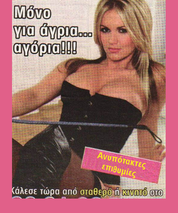Ανυπότακτα επιθυμώ τον σκληρό σου… καπιταλισμό… Έλα, μην αργείς… προσπάθησε να με υποτάξεις με offshore ακρότητες… Είμαι υγρή κι έτοιμη να… ανάψω, σαν τη βενζίνη στο μπουκάλι… γίνε εσύ η σπίθα που… θα φέρει την καταστροφή του… συστήματος… σε περιμένω στο 090… ή αν προτιμάς ΕΣΥ τον ρόλο του… ανυπότακτου… αν θέλεις να σε τιμωρήσω με απανωτά αυταρχικά μνημόνια… να με παρακαλάς να σε διατάξω κι εγώ ταπεινωτικά να εκχωρώ εθνική κυριαρχία… αν θέλεις να σε ποδοπατήσω σαν τα ΜΑΤ στην Πανεπιστημίου… στείλε ΜΠΑΚΟΥΝΙΝ ΜΕ ΤΑΚΟΥΝΙΝ στο 090…