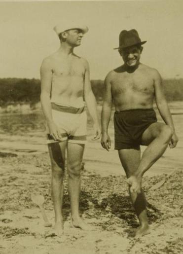 Gerald Murphy and Pablo Picasso at La Garoupe beach in Antibes