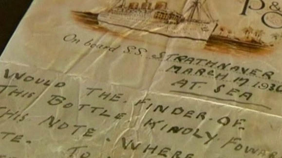76 ολόκληρα χρόνια ταξίδευε το μήνυμα στη θάλασσα που η οικογένεια του αποστολέα -την οποία εντόπισε ο Flood αποφάνθηκε ότι ξεκίνησε το ταξίδι του από το πλοίο του Βρετανικού Βασιλικού Ναυτικού στη διαδρομή από Αγγλία προς Αυστραλία. Το πλοίο λέγονταν «SS Strathnaver». Σήμερα το μήνυμα βρίσκεται στα χέρια του εγγονού του Herbert Ernest Hillbrick, που δεν γνώρισε ποτέ ο ίδιος. Εδώ θα τον δείτε να χαίρεται συγκινημένος για το μοναδικό οικογενειακό κειμήλιο που τον συνδέει με τον παππού του.