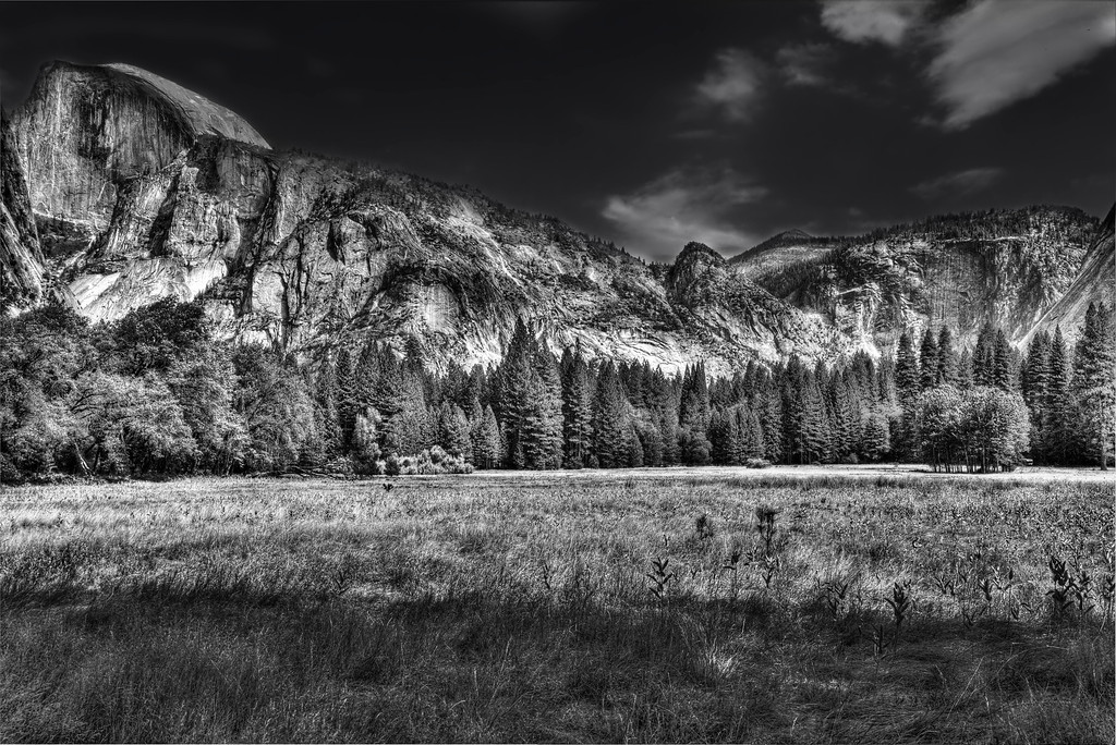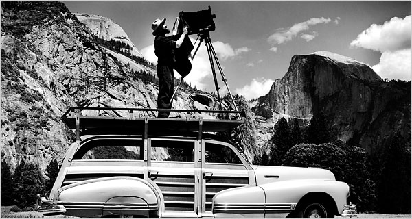 Αυτά τα χρώματα λάτρεψε ο διάσημος φωτογράφος Ansel Adams όταν το επισκέφτηκε με τους γονείς του, το 1916, ως έφηβος. Και αυτό το φως. Τα φωτογράφισε σε εκείνο το ταξίδι του με μία μικρή Kodak Brownie και από τότε δε σταμάτησε ποτέ να φωτογραφίζει αυτό το πάρκο για το οποίο ο ίδιος είπε ότι κατάλαβε αμέσως μόλις το αντίκρυσε πως είχε συναντήσει τη μοίρα του. Και πράγματι, παντρεύτηκε, εργάστηκε και πέθανε σ’ εκείνα τα μέρη, μη σταματώντας ποτέ να φωτογραφίζει την ομορφιά τους. Αυτές οι φωτογραφίες του θεωρούνται από τις σημαντικότερες στην ιστορία της ασπρόμαυρης φωτογραφίας, πολλές δικαιούνται να ονομάζονται —και είναι— «εμβληματικές». Όπως αποδεικνύει και η ίδια η εικόνα, ο όρος «ασπρόμαυρη», ωστόσο, αδικεί τις φωτογραφίες του Adams, ο οποίος επινόησε το «ζωνικό» σύστημα, μετέφρασε, δηλαδή, σε τόνους του γκρι το κάθε χρώμα και εφάρμοζε αυτές τις «ζώνες» σε κάθε βήμα της τέχνης του: από τη φωτομέτρηση ώς και την εκτύπωση της φωτογραφίας.