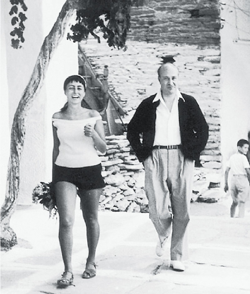 1953 Επιστρέφει στην Ελλάδα. Mε τη Bιβίκα ταξιδεύουν συχνά στην Άνδρο και σε άλλα μέρη της Eλλάδας.