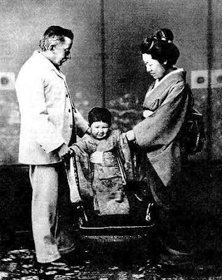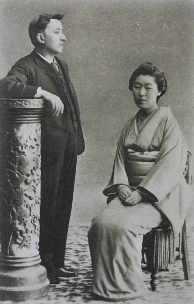Κατά την εκεί παραμονή του, σχετίστηκε στενά με τους ανθρώπους, ανέπτυξε στενή φιλία με τον καθηγητή Νισίντα Σεντάρο και μόλις τον 15ο μήνα από τότε που έφθασε στην χώρα νυμφεύθηκε την Κοϊζούμι Σέτσου ή Σετσούκο (φωτογραφία αριστερά με την γυναίκα του και τον γιο τους), θυγατέρα ενός πρώην σαμουράι της περιοχής, κατεστραμμένου πια λόγω της εισβολής των «δυτικών» και της συνακόλουθης διάλυσης της παραδοσιακής κοινωνικής ιεραρχίας. Με την Σέτσου απέκτησε τρεις γιούς, τους Κάζουο, Ιουάο και Κιγιόσι, καθώς και μία θυγατέρα, την Σέτσουκο.