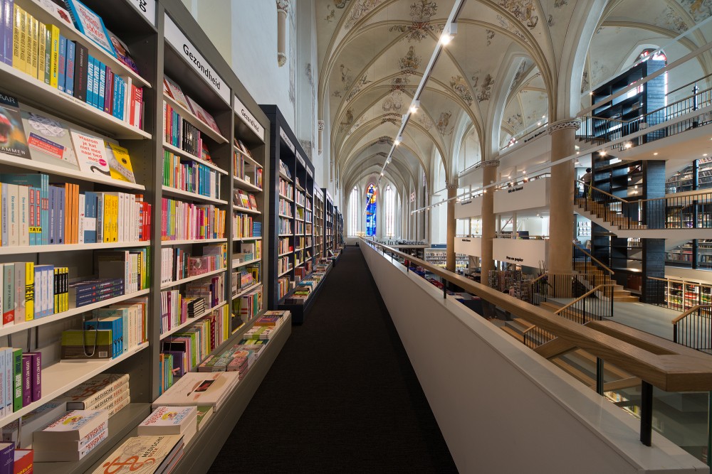 Η υπέροχη Δομινικανή εκκλησία του 15ου αιώνα που βλέπουμε στις φωτογραφίες δεν είναι πλέον αφιερωμένη στη Βίβλο μα στα χιλιάδες βιβλία τα οποία βρίσκονται στοιχημένα στις ατελείωτες σειρές ραφιών του τριώροφου βιβλιοπωλείου ‘Waanders In de Broeren‘ που άνοιξε τις πόρτες του για πρώτη φορά τον περασμένο Ιούλιο, στο Zwolle τής Ολλανδίας.