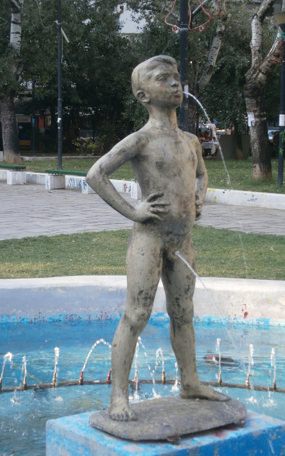 θνήσκοντες και θανόντες στοιχειώνουν τα πάρκα και τις πλατείες της πόλης. (Μοναδικές εξαιρέσεις η χαρίεσσα «λουομένη» δίπλα στον Λευκό Πύργο και ο αυθαδώς ουρών πιτσιρικάς της πλατείας Ναυαρίνου, ο οποίος υφίσταται κατά καιρούς αποκοπές και περιτομές).