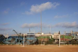 Lampedusa, Italy, July 2011. There are two cemeteries in Lampedusa, the one for the inhabitants and another one for the boats of migrants. That one is located just facing the port, between the road and a football playground, being part of the city landscape.