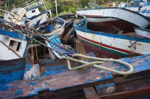 Lampedusa, Italy, July 2011. There are two cemeteries in Lampedusa, the one for the inhabitants and another one for the boats of migrants. That one is located just facing the port, between the road and a football playground, being part of the city landscape.