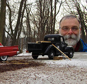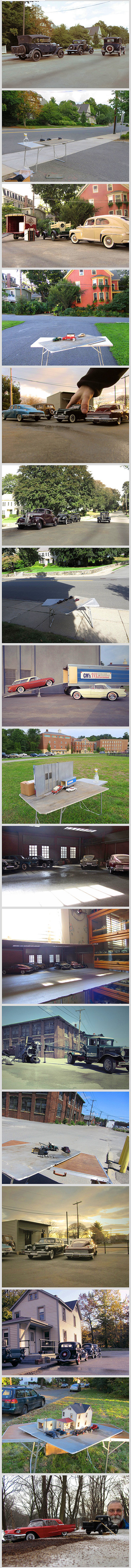 Ο Michael Paul Smith είναι μοντελιστής και φωτογράφος. Εδώ και 25 χρόνια κατασκευάζει αυτοκίνητα-μινιατούρες και τα φωτογραφίζει σε μια φανταστική πόλη της δεκαετίας του ’50, το Elgin Park. Πώς είναι δυνατόν να φωτογραφίζεις σε έναν τόπο επινοημένο; Χρησιμοποιώντας —εκτός από τα απολύτως αληθοφανή μοντέλα— βασικές αρχές της οπτικής και, κατ’ επέκταση, των εικαστικών —αφαίρεση, προοπτική— προκειμένου να ανακατέψεις τον πραγματικό με τον φανταστικό κόσμο — τοποθετώντας, δηλαδή, τα μοντέλα σε ένα τραπέζι, ενίοτε με μέρος του φόντου στη δική τους κλίμακα, και αξιοποιώντας εν συνεχεία το πραγματικό φόντο και τον φυσικό φωτισμό. Με μια απλή compact ψηφιακή, χωρίς photoshop ή άλλη επεξεργασία μετά τη λήψη, ο Michael Paul Smith δημιουργεί μια μυθοποιητική νοσταλγική εκδοχή της αμερικάνικης suburbia των 1950s και τη μοιράζεται με εκατομμύρια επισκέπτες του παγκόσμιου κυβερνοχώρου των 2010s.