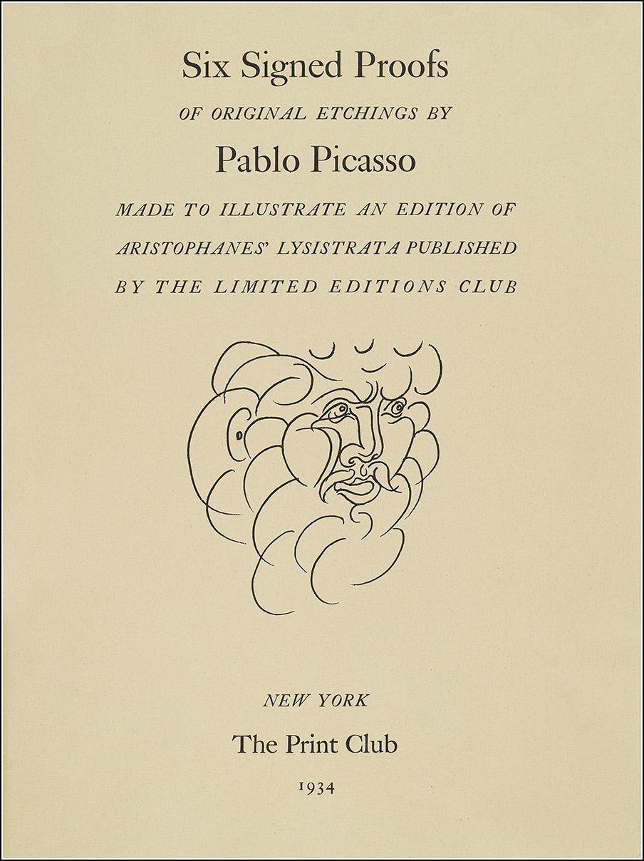 Στα μέσα της δεκαετίας του ’30, ένας εκδοτικός οίκος με το όνομα Limited Editions Club έβγαζε καλαίσθητα βιβλία υψηλής ποιότητας και είχε γίνει γνωστός για τις επανεκδόσεις σε περιορισμένα αντίτυπα (μόνο 1500, για την ακρίβεια) λογοτεχνικών αριστουργημάτων σε εικονογραφήσεις διασήμων ζωγράφων. Μία από αυτές τις εκδόσεις ήταν η Λυσιστράτη του Αριστοφάνη (1934) σε εικονογράφηση Πάμπλο Πικάσο, βιβλίο που σήμερα θεωρείται —μαζί με τον Οδυσσέα του Τζέιμς Τζόις σε εικονογράφηση Ανρί Ματίς, έκδοσης 1935— ένα από τα πιο περιζήτητα συλλεκτικά βιβλία που υπάρχουν στην αγορά.