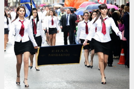 Το ερώτημα έχει μία και μόνιμη αυτονόητη απάντηση : προφανώς και δεν πρέπει να γίνονται μαθητικές παρελάσεις. Αν κάποιος γονιός δεν έχει επιλέξει να ζει –έστω και φαντασιακά – στη Βόρεια Κορέα, σίγουρα δεν θα ήθελε να βλέπει το παιδί του να μπερδεύει το στρατιωτικό εμβατήριο των οπλιτών με το συνταγματικό πατριωτισμό των πολιτών. Αλλά ως τότε, και ανεξαρτήτως του μήκους της φούστας, αξίζει να συγχαρούμε τη νεαρή σημαιοφόρο που έδωσε νόημα στους ξεχασμένους στίχους του Νίκου Εγγονόπουλου : «Αλβανοί χορεύοντες σκέπτονται να στρέψουν προς νέες διευθύνσεις τις ενέργειές τους, εις τρόπον ώστε να μην καταλάβουν τίποτες από τις πικρίες και τας απογοητεύσεις της ζωής. Να μην καταλάβουν τίποτες πριν από τον καιρό τους».