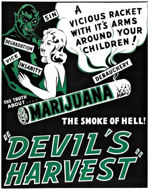Μια καμπάνια που υπόσχεται άγριες συγκινήσεις και αχαλίνωτα σεξουαλικά όργια είναι μάλλον διαφημιστική, όχι το αντίθετο. Καλά, οκ, εξαρτάται από τα κοινωνικά συμφραζόμενα: πάντως στις ΗΠΑ του Μεσοπολέμου, η καμπάνια της Ομοσπονδιακής Υπηρεσίας κατά των Ναρκωτικών (Federal Bureau of Narcotics) ενάντια στη χρήση μαριχουάνας απειλούσε με (ή υποσχόταν) ακριβώς αυτά. Ή, μάλλον, απειλούσε με τιμωρία αργότερα, καθώς η χρήση μαριχουάνας —και η συνακόλουθη αναπόφευκτη έκλυση των ηθών— οδηγούσε κατευθείαν στην αγκαλιά του Οξαποδώ. Με άλλα λόγια, κάπνιζες ένα μπάφο, έκανες σεξ μέχρι τελικής πτώσεως και μετά πήγαινες στην Κόλαση. Η εμπνευσμένη αυτή καμπάνια, που στόχο είχε να πείσει τους νέους Αμερικανούς να μην πίνουν μαύρο, είχε τίτλο «Στα όπλα!» και ήταν έργο του Harry J. Anslinger, στελέχους της ως άνω υπηρεσίας.