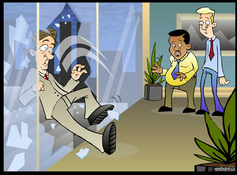 1996: Ένας αξιοσέβαστος δικηγόρος από το Τορόντο ήταν, προφανώς, εξαιρετικά περήφανος –δυσανάλογα, θα λέγαμε, περήφανος– για την ανθεκτικότητα των υαλοπινάκων στην αίθουσα συνεδριάσεων του γραφείου του. Έτσι, δεν έχανε ευκαιρία να επιδεικνύει στους νέους συναδέλφους την ασφάλεια που τους παρείχε, πέφτοντας με φόρα πάνω στην, υποτίθεται, άθραυστη τζαμαρία. Μέχρι που η τζαμαρία αποφάσισε πως, ώς εδώ, και μια μέρα υποχώρησε, ανοίγοντας τον δρόμο στον δικηγόρο για μια μακρά πτώση 24 ορόφων.