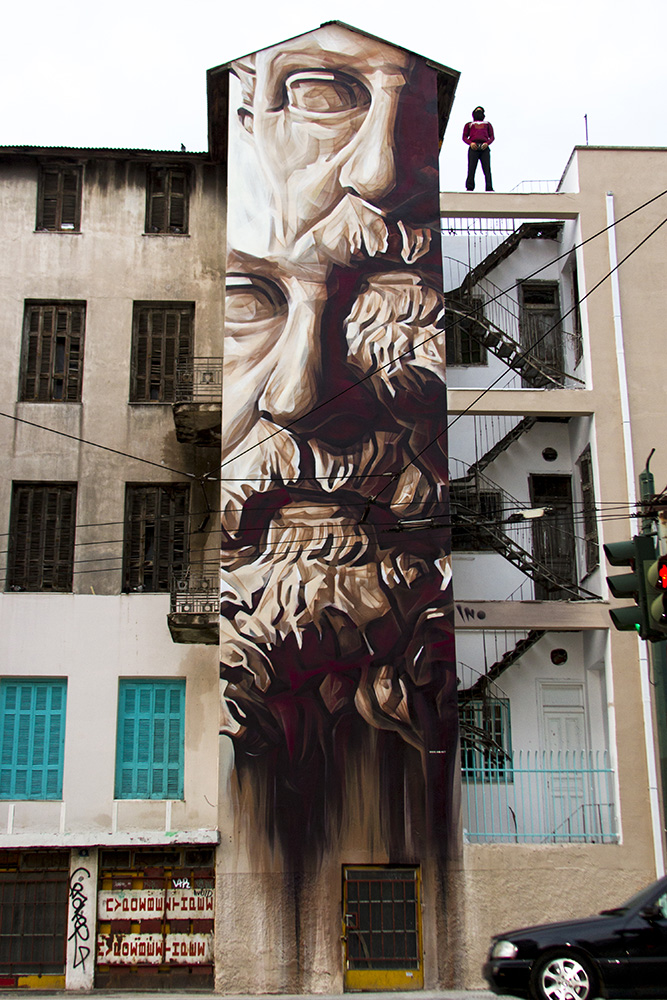 Ο iNO ζωγραφίζει τον Σόλωνα σε τοίχο της Αθήνας