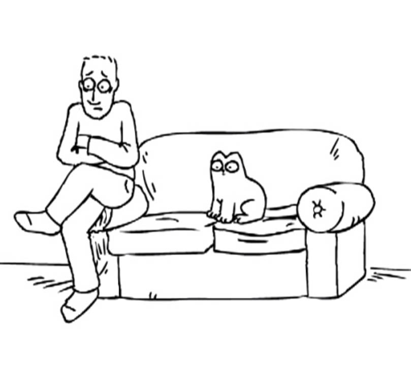 Μια γάτα προπαθεί να αποσπάσει την προσοχή του ανθρώπου της. Με γατίσιο τρόπο. Από τη σειρά: Simon’s cat.