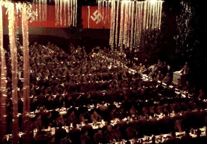 Οι εικόνες έχουν κάτι αλλόκοσμο και ανατριχιαστικό, για κάποιον απροσδιόριστο λόγο μοιάζουν σχεδόν σουρεαλιστικές: Ο Αδόλφος Χίτλερ, περιστοιχισμένος από αξιωματούχους Ναζί παίζει τον ρόλο του οικοδεσπότη-τιμωμένου προσώπου σε μια χριστουγεννιάτικη συγκέντρωση. Τα περιβραχιόνια με τις σβάστικες λειτουργούν σαν παράφωνο και τραγικό αντιστάθμισμα της λάμψης των στολιδιών και της ατμοσφαιρικής φλόγας των κεριών που φωτίζουν την εορταστική σκηνή.