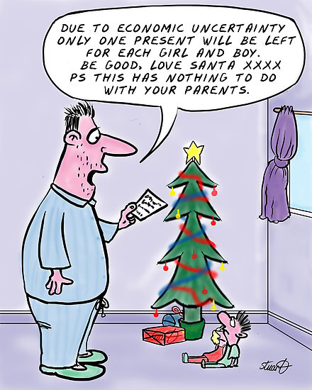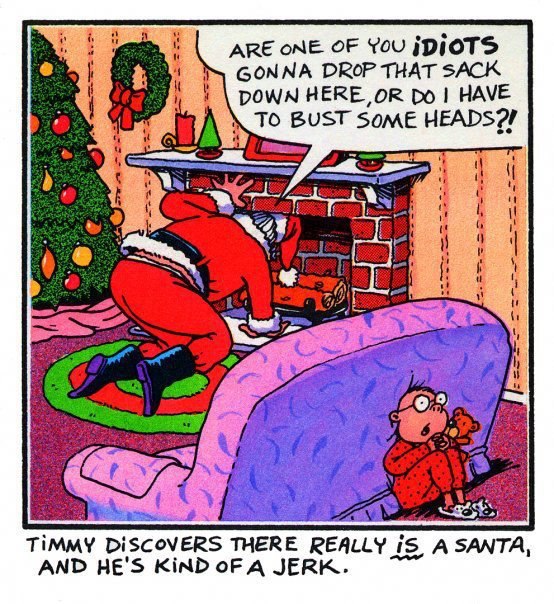 Αν η γλυκερή χολιγουντιανή —και, κυρίως, καταναλωτική— εκδοχή της χειμερινής εορταστικής περιόδου έχει επικρατήσει στον σύγχρονο δυτικό κόσμο, τα Χριστούγεννα, η Πρωτοχρονιά και ο εορτασμός τους, με όλα του τα ντεσού —μάγοι, δώρα, χιονάνθρωποι, αγιοβασίληδες, έλκηθρα, ελαφάκια, ξωτικά κ.λπ.— αποτελούν σταθερή πηγή έμπνευσης για τους γελοιογράφους και τους καρτουνίστες.  Διαλέξαμε μερικές χαρακτηριστικές αγγλόφωνες γελοιογραφίες. Απολαύστε υπεύθυνα: