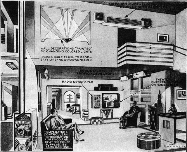 «Οι συσκευές θα συνεχίσουν να απαλλάσσουν τους ανθρώπους από διάφορες βαρετές δουλειές. Οι κουζίνες θα είναι κατασκευασμένες έτσι ώστε να φτιάχνουν “αυτογεύματα”, να βράζουν νερό και να το μετατρέπουν σε καφέ· να φρυγανίζουν ψωμί· να κάνουν τα αυγά τηγανιτά, βραστά ή ποσέ, να ψήνουν μπέικον κλπ. Θα δίνεται παραγγελία για το πρωινό αποβραδίς ώστε να είναι έτοιμο μια συγκεκριμένη ώρα την επομένη».