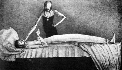 Λίγο παραπάνω από είκοσι χρόνια αργότερα (1901-1902), ο συμβολιστής ζωγράφος και συγγραφέας Alfred Kubin απογυμνώνει το Θάνατο από το προσωπείο του σε ένα σχέδιο με μελάνη που έχει τίτλο «Ο Καλύτερος Γιατρός». Το δημιούργημα του Kubin είναι ανατριχιαστικά ερμαφρόδιτο: από το γυμνό κρανίο ξεφυτρώνουν τούφες από άψυχα μακριά μαλλιά ενώ το σώμα είναι ένα κράμα των δύο φύλων· έχει μυώδη ανδρικά μπράτσα, επίπεδο στήθος και, την ίδια στιγμή, πλούσιες γυναικείες καμπύλες τονισμένες υπερβολικά από ένα στενό μαύρο φόρεμα. Θα μπορούσε σχεδόν να περιγραφεί ως μια ανδρική φιγούρα ντυμένη με γυναικεία ρούχα. Το σχέδιο μοιάζει να είναι ένα σχόλιο για την υπερβολική εμπιστοσύνη που δείχνουν οι άνθρωποι στη δύναμη που έχει η ιατρική να σώζει ζωές. Ο Θάνατος, εδώ, ο οποίος είναι προφανώς ο «Καλύτερος Γιατρός» του τίτλου, δεν κλείνει ευσπλαχνικά τα μάτια του ετοιμοθάνατου αλλά τον πνίγει καλύπτοντας με βία το πρόσωπό του με το χέρι.