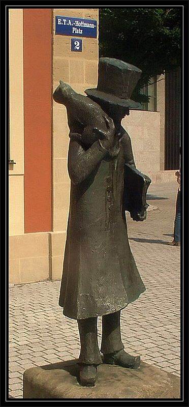 Άγαλμα του Χόφμαν και του γάτου του, στην Μπάμπεργκ.