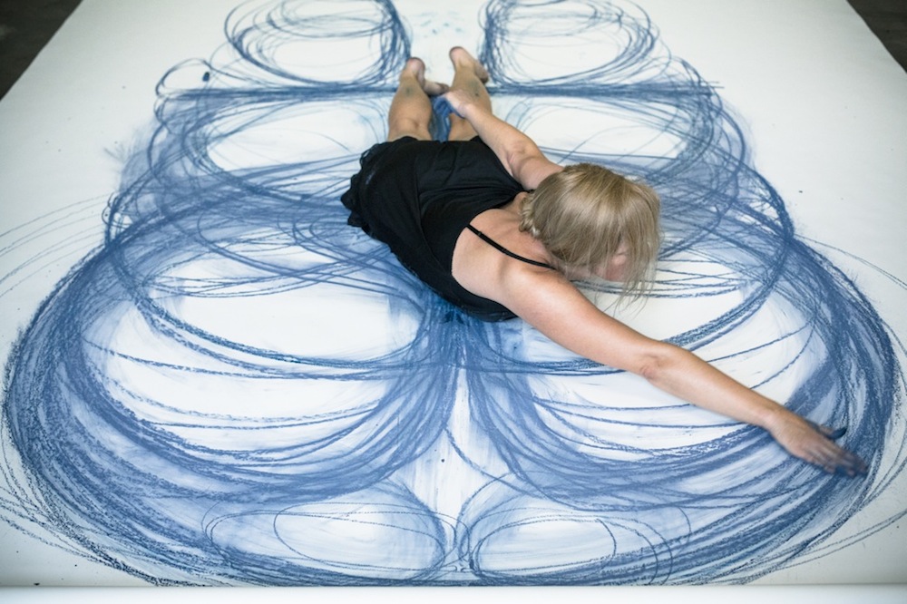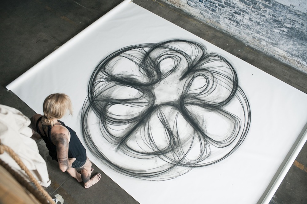 Χρησιμοποιώντας το σώμα και την κίνηση, η Heather Hansen δημιουργεί εντυπωσιακά έργα με κάρβουνο.