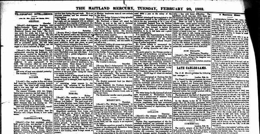 The Maitland Mercury (New South Wales: 1843 – 1893), Τρίτη 28 Φεβρουαρίου 1882.