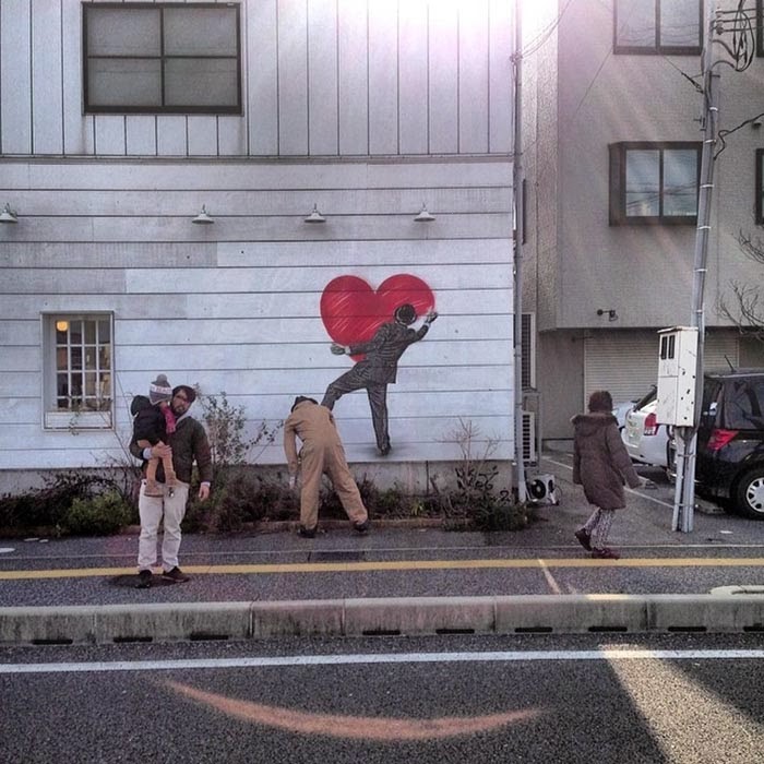 Ο πολύ αγαπημένος μας Nick Walker μόλις ολοκλήρωσε το τελευταίο του έργο: Τον εμβληματικό του άνδρα με το καπέλο που ζωγραφίζει μια καρδιά, αυτή τη φορά σε τοίχο πόλης της Ιαπωνίας. Αυτό το θέμα, το οποίο ο street artist ονομάζει Love Vandal, είναι από τα πολύ αγαπημένα του και το έχουμε συναντήσει στους τοίχους πολλών πόλεων. Ο Nick Walker ξεκίνησε τη δράση του στο Μπρίστολ της Αγγλίας τη δεκαετία του ’80 και έκτοτε ο Vandal του έβγαλε διαβατήριο και ταξιδεύει σ΄ όλον τον κόσμο.