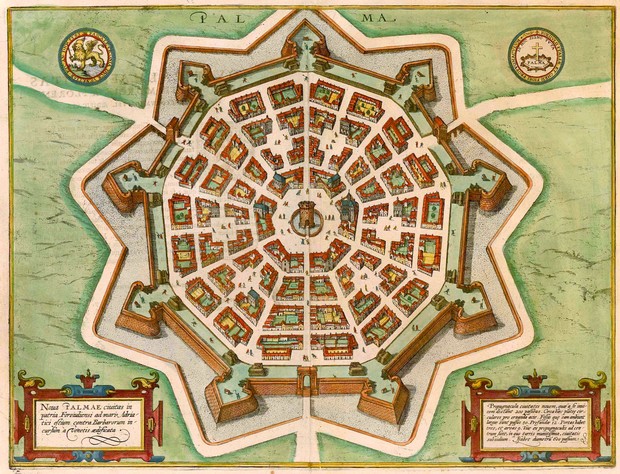 Map of Palmanova, from Franz Hogenberg and Georg Braun, ‘Civitates orbis terrarum’ (1572–1616), Nuremberg