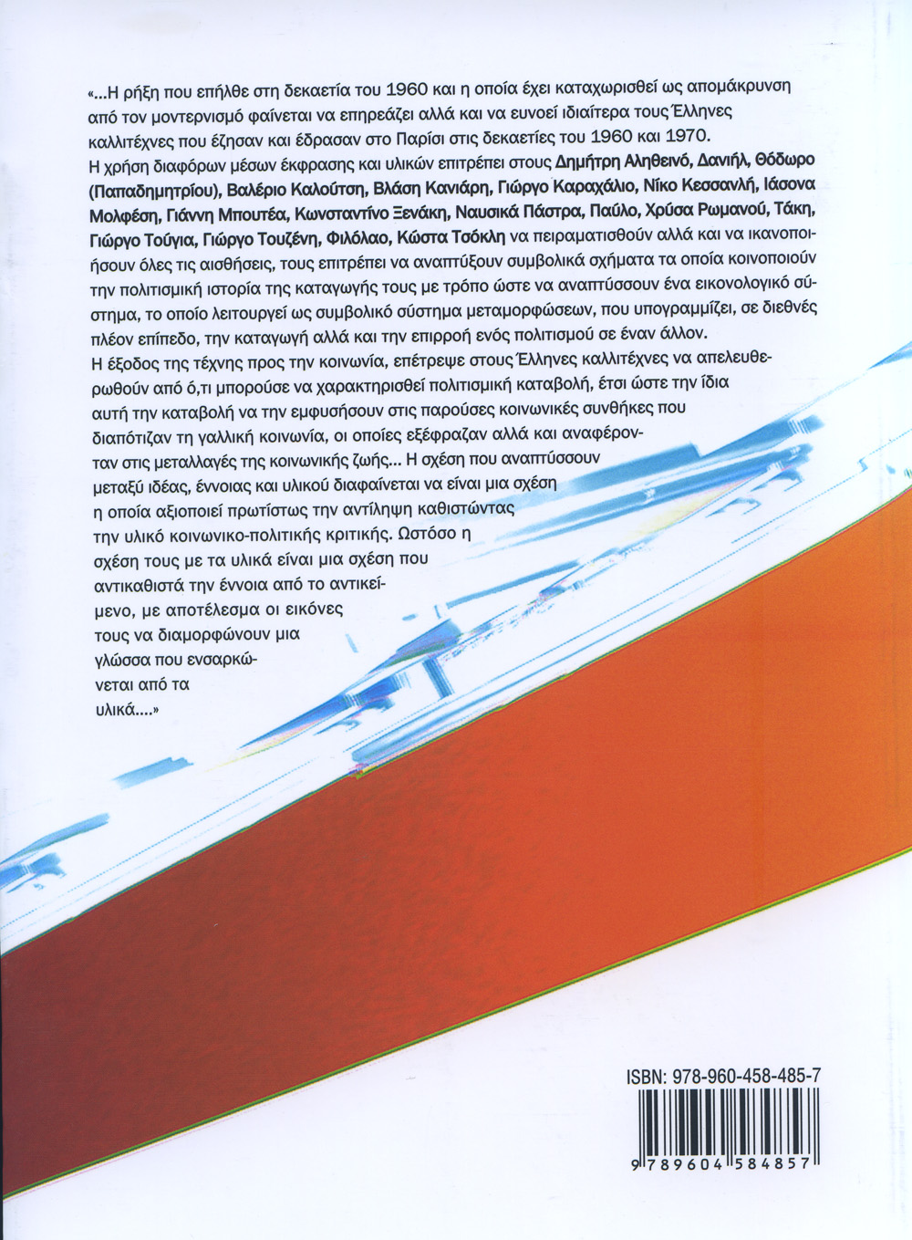Πρόκειται για μια ενδελεχή προσέγγιση των εικαστικών μέσων και ερευνών των Ελλήνων καλλιτεχνών στη Γαλλία κατά τις δεκαετίες 1960-70. Ερευνάται η διασύνδεση των εργασιών των Ελλήνων καλλιτεχνών του Παρισιού με το πνεύμα της εποχής, με τα όσα συνέβαιναν ευρύτερα στην Ευρώπη κατά την περίοδο αυτή, στο πεδίο της πρότασης νέων ιδεών και καλλιτεχνικών συμπεριφορών, ως αμφισβητήσεων και ανατροπών των μέχρι τότε δεδομένων καλλιτεχνικών δομών.