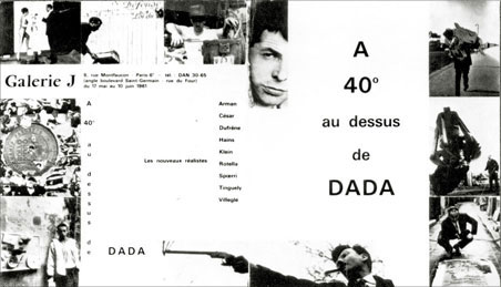 Η κοινωνική εξέλιξη της εποχής και ο αντίκτυπός της στην τέχνη αναλύεται ιδιαίτερα εύστοχα από τον Pierre Restany στο πρώτο μανιφέστο των νεορεαλιστών, όπου αναφέρει ότι η κοινωνιολογία έρχεται να βοηθήσει τη συνείδηση και το τυχαίο, είτε σε επίπεδο επιλογής είτε μέσα από τις σκισμένες αφίσες είτε πρόκειται για την όψη ενός αντικειμένου, ενός απόβλητου, είτε αφορά στη διάχυση μιας ευαισθησίας που ξεπερνά τα όρια της αντίληψης. Το αποτέλεσμα παρόμοιων θέσεων είναι ότι οι νεορεαλιστές χρησιμοποιούν υλικά του περιβάλλοντος της «πόλεως» όπως: νέον, μηχανές, αφίσες, πλαστικό ‒κάθε μορφής βιομηχανικά απορρίμματα‒ και τα καθιστούν όργανα της καλλιτεχνικής έκφρασής τους. Ενώ στην ερώτηση «τι είναι ο νεορεαλισμός;» απαντούν: νέα προσέγγιση αντίληψης του πραγματικού. Η πολιτιστική σκηνή του Παρισιού αυτή την περίοδο είναι ιδιαίτερα κοσμοπολίτικη. Το 1961, με την έκθεση 40ο au-dessus de dada (40ο πάνω από το dada), οι νεορεαλιστές που εκθέτουν στη γκαλερί J, όπως οι Arman, Spoerri, Raysse, με τις ευκρινείς αναφορές στο ready made του Duchamp, διαμορφώνουν συνθήκες ρήξης. Συγχρόνως ο Restany24 στο εισαγωγικό σημείωμα του κατάλόγου σημειώνει ότι «το ready made δεν είναι πλέον σημείο άρνησης ή πολεμικής, αλλά το στοιχείο ενός νέου εκφραστικού ρεπερτορίου. Αυτός είναι ο νεορεαλισμός: με έναν πιο άμεσο τρόπο να πατήσει γερά στη γη, αλλά 40ο audessus du zero dada …».