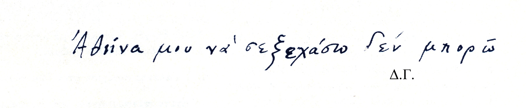Με τις πρώτες απογευματινές ώρες ο Γαλάνης ζήτησε να επιστρέψουμε, πριν βασιλέψει ο ήλιος. Είχε την επιθυμία να περπατήσουμε πλάι στον Υμηττό. Ήθελε να δει την απ’ αυτή την πλευρά. Γιατί, καθώς έλεγε, δεν την είχε δει ποτέ του και δεν ήξερε αν θα ξαναείχε την ευκαιρία. Και πραγματικά φτάσαμε στο ψηλότερο σημείο (εκεί που σήμερα τελειώνει, προς τον Υμηττό, ο συνοικισμός Παπάγου. Απλώθηκε μπροστά μας μια Αθήνα άγνωστη σε όλους μας. Δυο όγκοι εδέσποζαν πάνω από τα’ άσπρα σπίτια της πόλης. Δεξιά ο Λυκαβηττός, αριστερά η Ακρόπολη, σα να επρόκειτο για έναν όγκο με δυο κορυφές. Ο Παρθενώνας, φωτισμένος απ’ τον ήλιο που έγερνε στη δύση του, έλαμπε και –πράγμα απίστευτο– ο όγκος της Ακρόπολης έβγαινε μέσα απ’ τη θάλασσα. Το μοναδικό αυτό θέαμα έκανε τη μικρή μας ομήγυρη να σταματήσει. Ο Γαλάνης έμεινε ακίνητος κι εκστατικός. Ποτέ ασφαλώς δεν είχε δει την Αθήνα σ’ αυτή τη λιτή και μνημειώδη σύνθεση…»