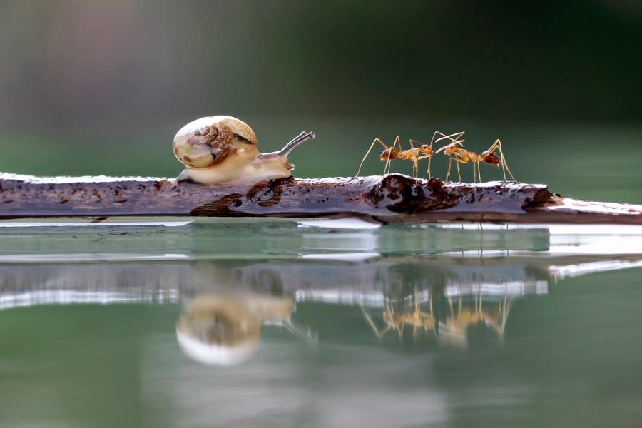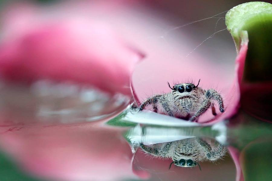 Ο Teguh Santosa ζει στην Yogyakarta της Ινδονησίας και είναι ερασιτέχνης φωτογράφος. Περίπου πριν από δύο χρόνια ξεκίνησε να βγάζει φωτογραφίες με τη μέθοδο της μακροφωτογράφησης, και τα αποτελέσματα είναι εκπληκτικά. Η μακροφωτογράφηση, η απεικόνιση, δηλαδή, πλασμάτων από πολύ κοντινή απόσταση, ώστε στη φωτογραφία να φαίνονται σε μεγαλύτερο μέγεθος από το πραγματικό τους, προβάλλει έναν σχεδόν αθέατο κόσμο – οργανισμούς που ζουν κοντά μας, στην επιφάνεια της γης, αλλά σχεδόν πάντα λανθάνουν της όρασης μας. Η μακροφωτογράφηση χρειάζεται πρώτα απ΄ όλα υπομονή, αγάπη για την πανίδα και την χλωρίδα, και γνώσεις για τις συνήθειες των φωτογραφιζόμενων οργανισμών. Και κυρίως απαιτείται σεβασμός πρός όλα αυτά τα πλάσματα. Ο φωτογράφος δεν τα αντιμετωπίζει απλώς σαν πεταλούδα, αράχνη, μυρμήγκι, λιβελούλα, άλλα σαν κάτι που μοιράζεται με μας τον ίδιο χώρο μέσα στο σύμπαν.