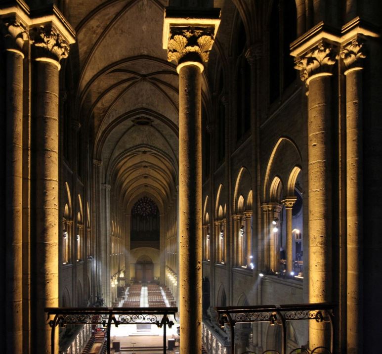 Το εσωτερικό του μεγαλειώδους ναού της Παναγίας των Παρισίων έγινε ακόμη πιο εντυπωσιακό χάρη στο νέο φωτισμό εσωτερικού χώρου που αναδεικνύει ιδανικά την τέχνη, τα βιτρό, τις αρχιτεκτονικές γραμμές και άλλα χαρακτηριστικά του ναού που ήταν προηγουμένως βυθισμένα στο σκοτάδι και τη σκια.