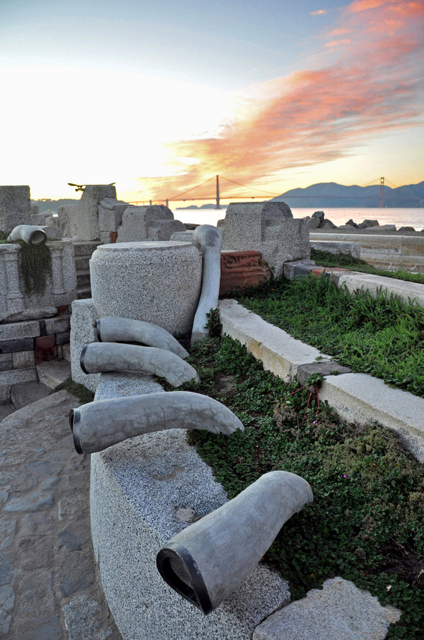 Στην άλλη άκρη του κόσμου σχεδόν, στον Κόλπο του Σαν Φρανσίσκο, βρίσκεται ο «παππούς» του κροατικού Sea Organ, το Wave Organ, δημιουργία των καλλιτεχνών Peter Richards και George Gonzales, που μετουσιώνει την αέναη κίνηση των νερών του Κόλπου σε μουσική νησίδα.