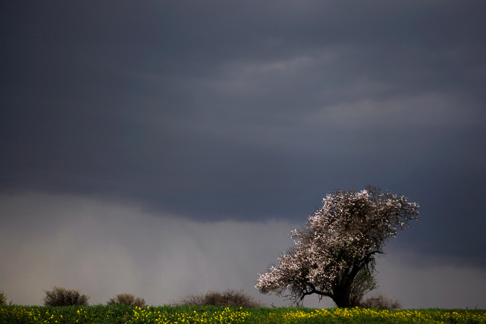Μια ανυπόμονη αμυγδαλιά ανθισμένη από τις 14 Φεβρουαρίου σε αγρό κοντά στο χωριό Κρίνη της κατεχόμενης Κύπρου. (Petros Karadjias/Associated Press