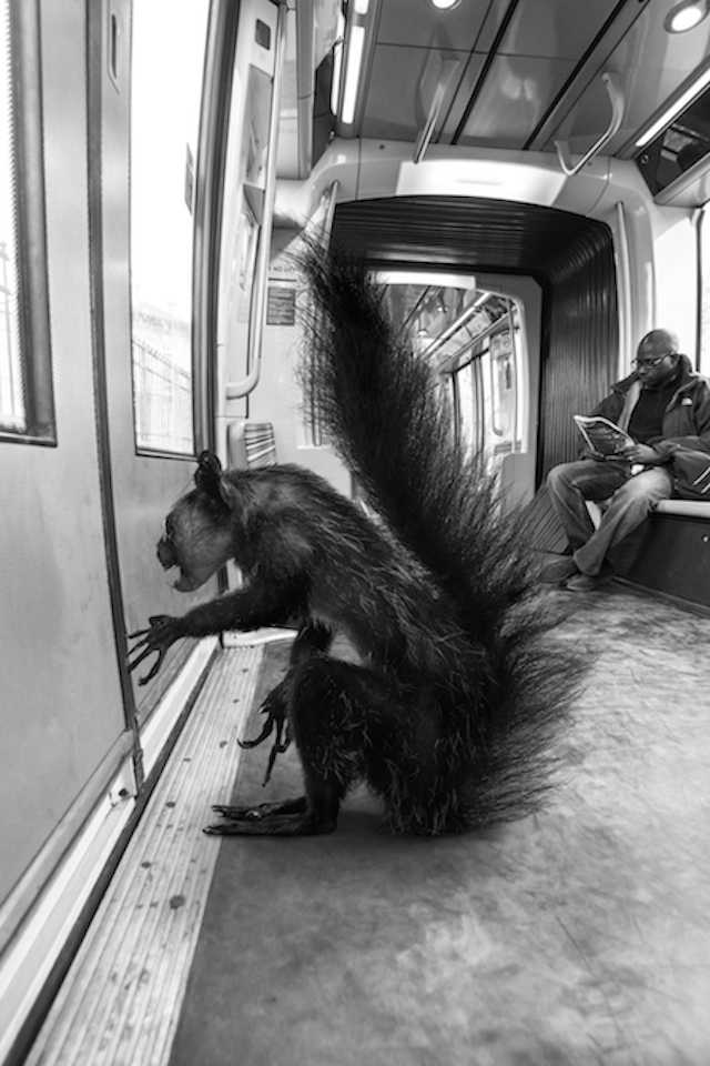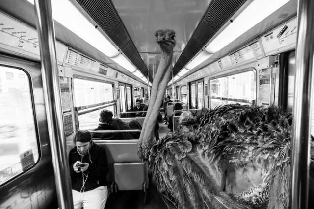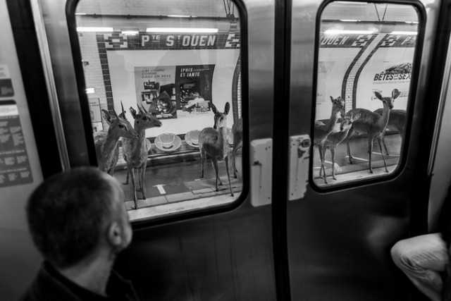 Πώς θα σας φαινόταν αν κάποια στιγμή είχατε συνεπιβάτη σας στο μετρό έναν ελέφαντα; Αν καθόταν δίπλα σας μία στρουθοκάμηλος; Αν είχε αποκοιμηθεί στο απέναντι κάθισμα μια αλεπού; Απίθανο να συμβεί, θα μου πείτε. Κι εγώ θα σας απαντήσω: όχι και τόσο, χάρη στις εκπληκτικές, γεμάτες χιούμορ και αληθοφάνεια φωτογραφίες της Clarisse Rebotier. Η Γαλλίδα φωτογράφος και ζωγράφος Clarisse Rebotier και ο φωτογράφος Thomas Subtil ένωσαν τις δυνάμεις τους και μας παρουσιάζουν το «Animétro», πορτρέτα ζώων που τριγυρίζουν στο μετρό του Παρισιού. Το κάθε ένα από τα ζώα έχει τοποθετηθεί ψηφιακά στο περιβάλλον έτσι ώστε να δρα μέσα σε συνηθισμένες, καθημερινές καταστάσεις. Οι φωτογραφίες της συλλογής «Animétro» παρουσιάζονται στη Millesime Gallery στο Παρίσι από τις 13 Μαρτίου έως 17 Απριλίου.